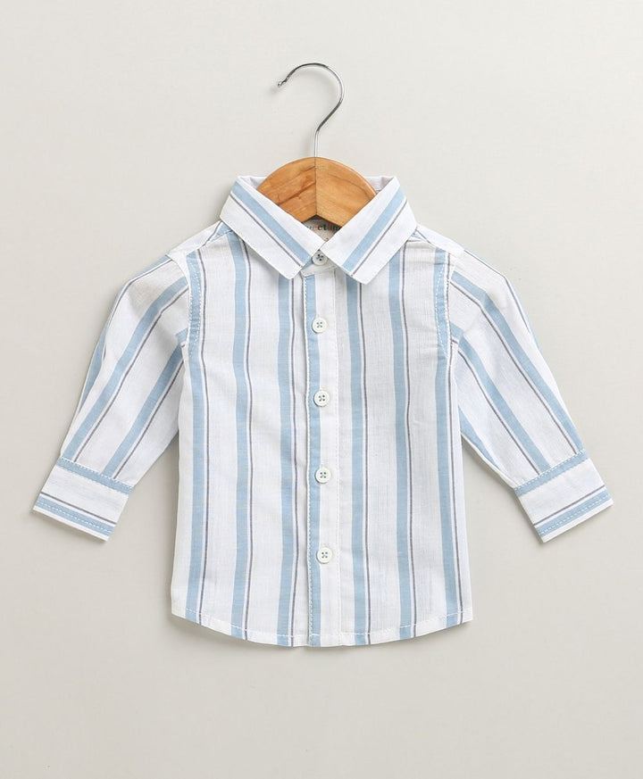 Sweetlime By AS Baby Boys Blue Stripes Cotton Co-ord Set - White & Blue