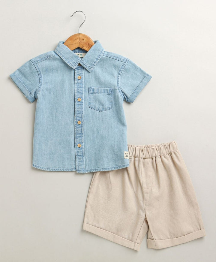 Keep your little explorer cool and stylish with our Denim Shirt and Beige Shorts Set By Sweetlime By AS. This adorable combo features a soft, lightweight denim shirt with wooden buttons and a cute pocket detail — paired with comfy beige shorts that have an elastic waistband for easy movement. Perfect for everyday adventures, picnics, or casual outings, this outfit blends effortless charm with comfort. Made from 100% breathable cotton fabric to keep your munchkin fresh and happy all day long!