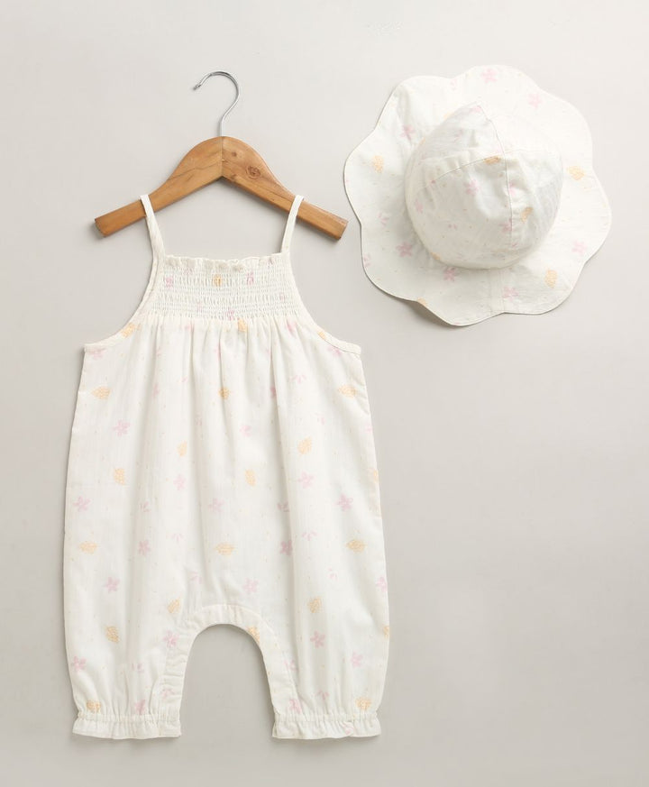 Sweetlime By AS Baby Girls' Cotton Buttercup Breeze Romper & Hat Set - White