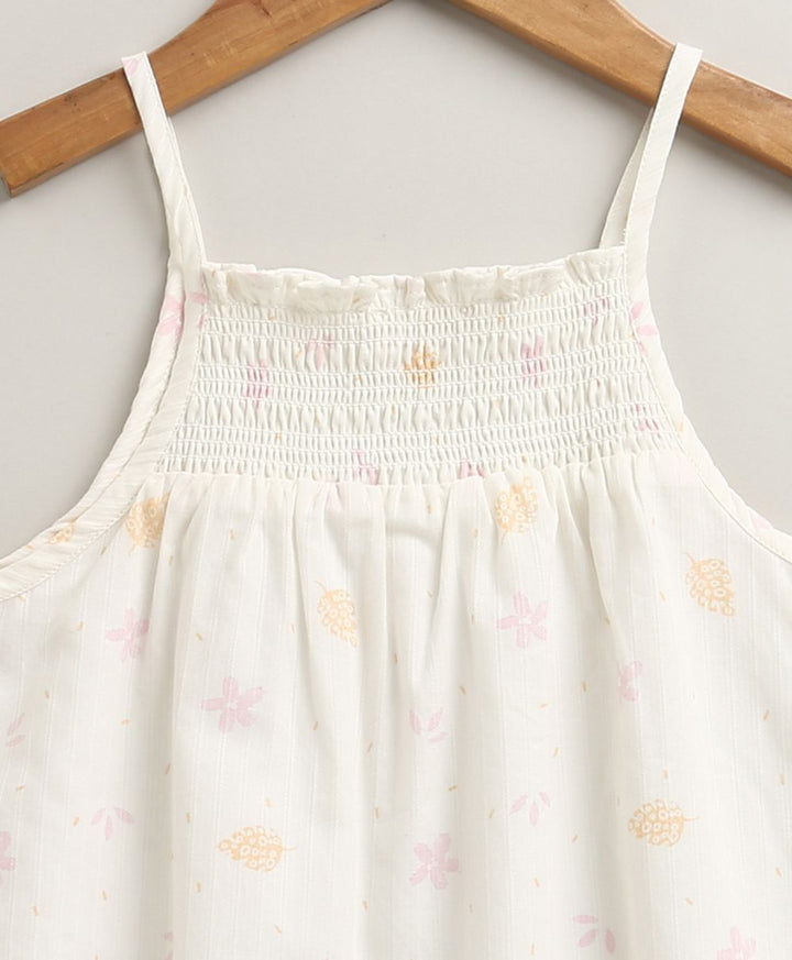 The Cotton Buttercup Breeze Romper & Hat Set by Sweetlime By AS has a lovely pastel floral design and comfortable smocked bodice, it’s the perfect outfit for your little one’s adventures. The adjustable straps ensure a perfect fit, while the matching hairband with a bow adds the finishing touch to this darling ensemble.