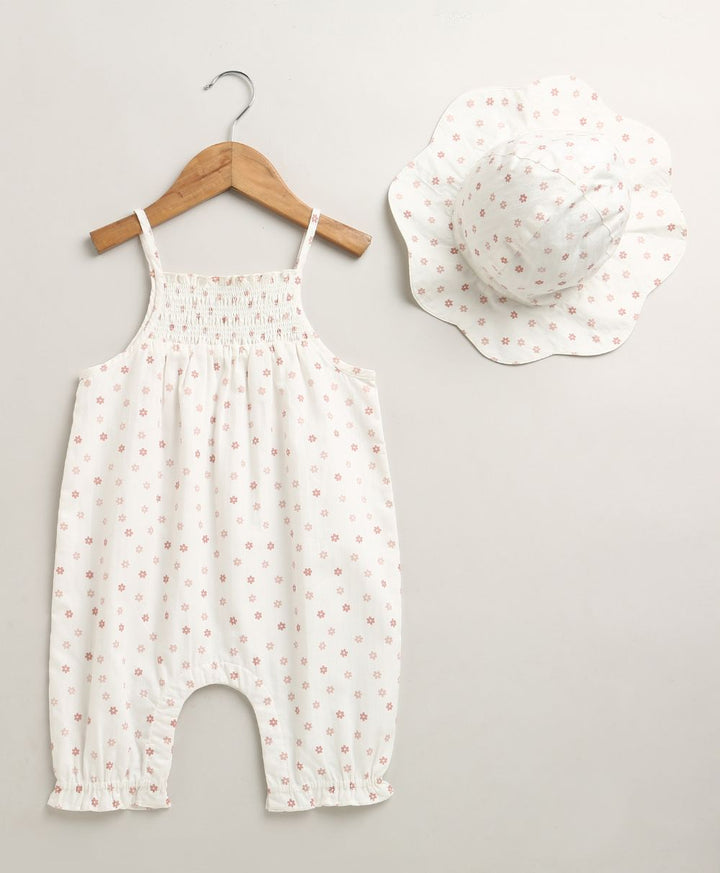Sweetlime By AS Baby Girls' Cotton Tiny Petal Summer Romper & Hat Set - White