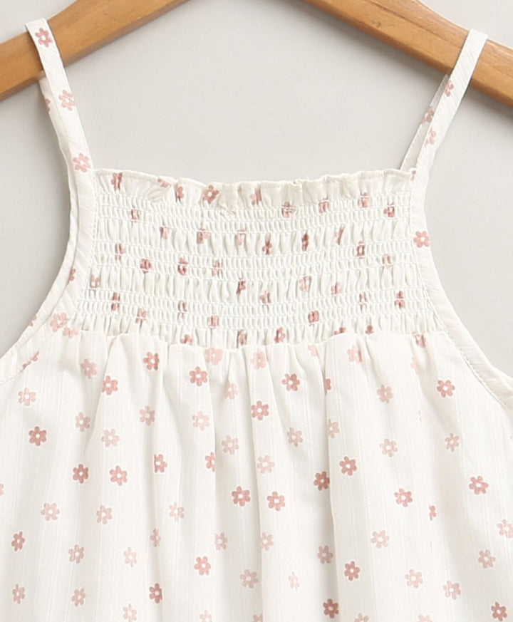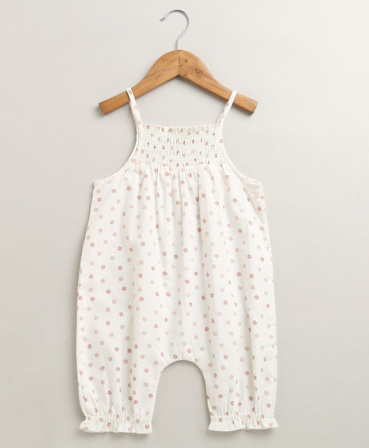 Let your little one enjoy sunny days in this adorable Baby Girls' Cotton Tiny Petal Summer Romper & Hat Set by Sweetlime By AS. It is designed with a soft floral print on a creamy white base. This outfit is both sweet and stylish. The smocked top provides a snug, comfy fit, while the matching wide-brim hat adds extra sun protection. Made from breathable cotton, it’s perfect for warm-weather outings, playtime, or photoshoots..