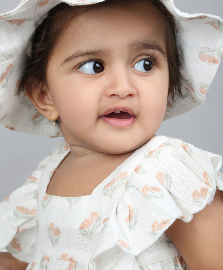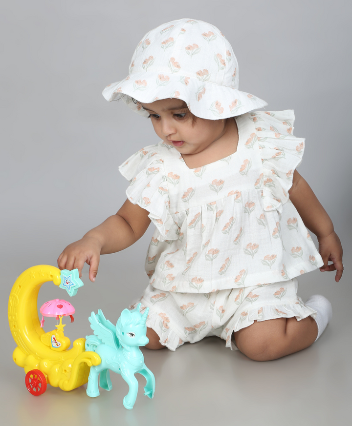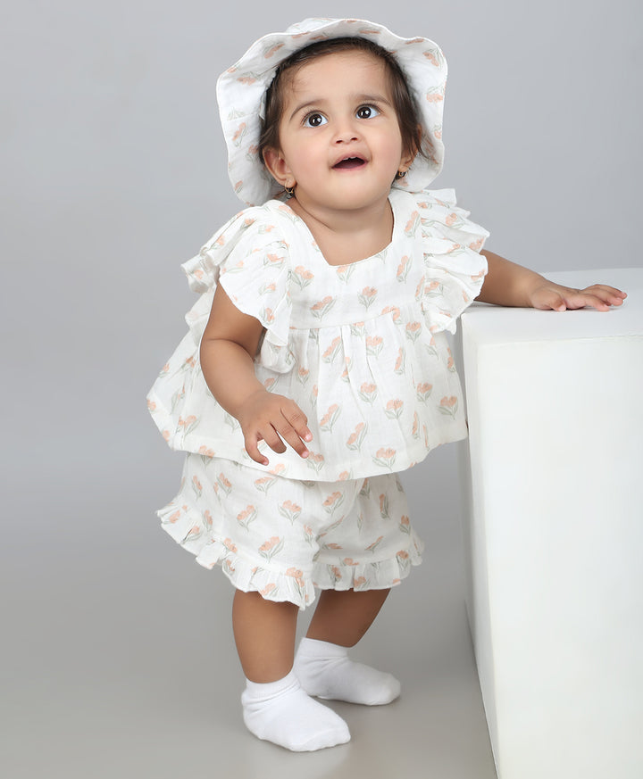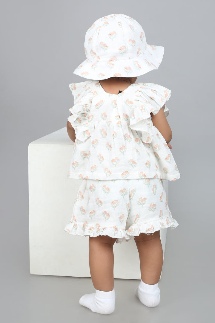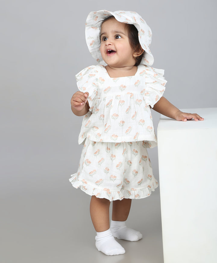 Sweetlime By AS Blossom Breeze Organic Cotton Summer Co-ord White Set With A Hat - White