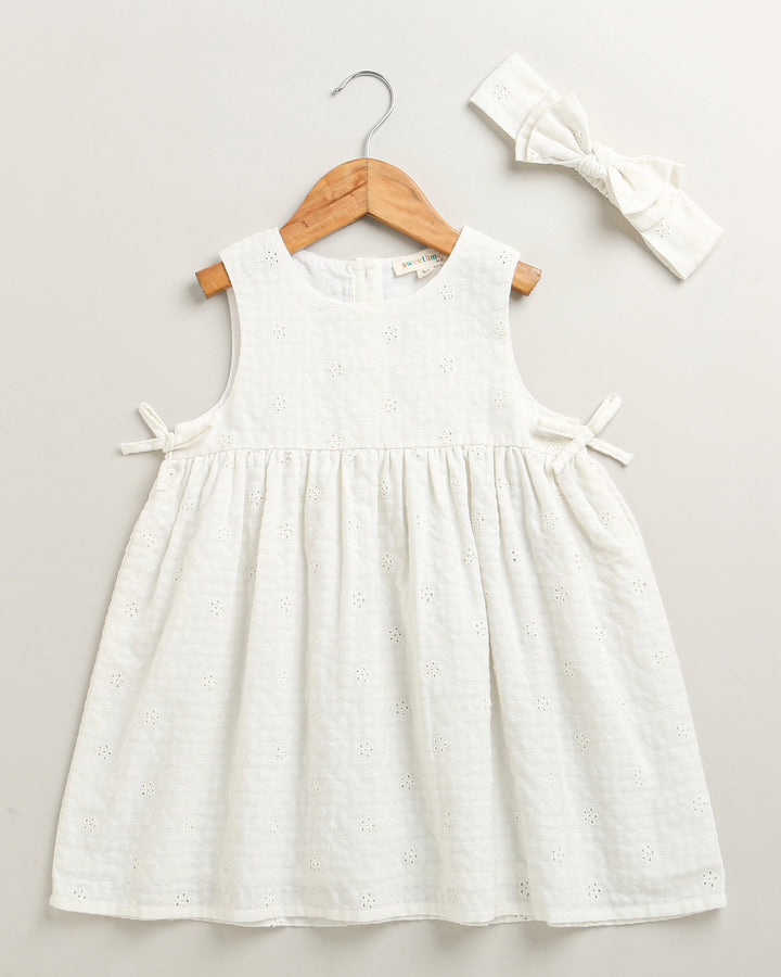 Sweetlime By AS Organic Cotton White Sundress with Hair band - White
