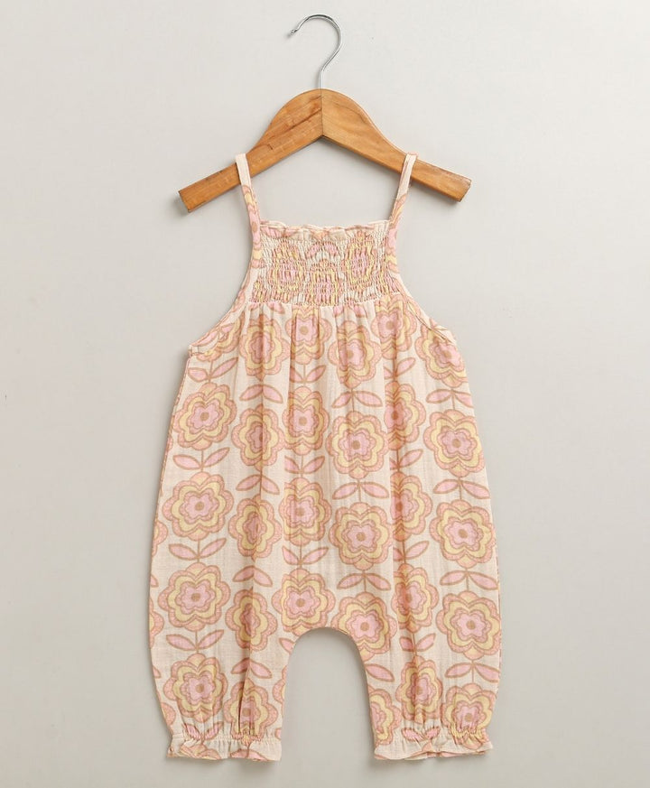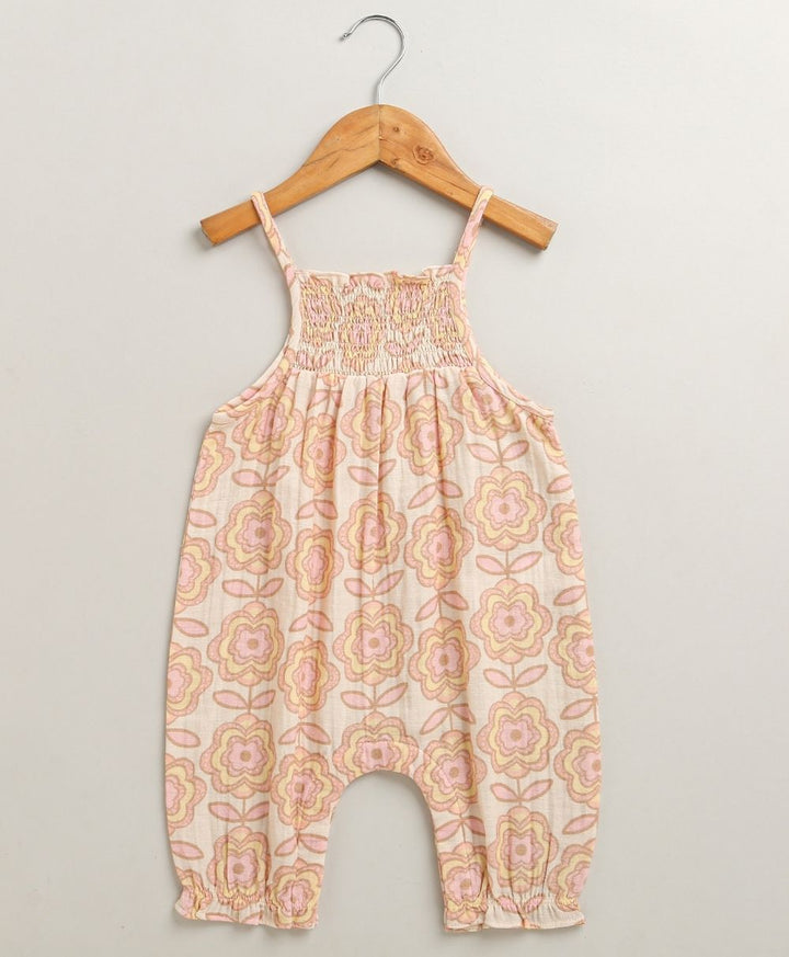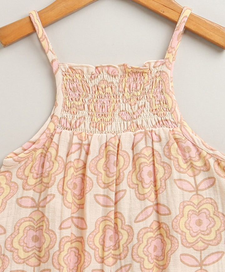 Sweetlime By AS Groovy Bloom Smocked Cotton Romper & Hairband Co-ord Set - Beige