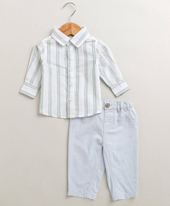 Sweetlime By AS Baby Boys' Mint Stripes Co-ord Set - White & Blue