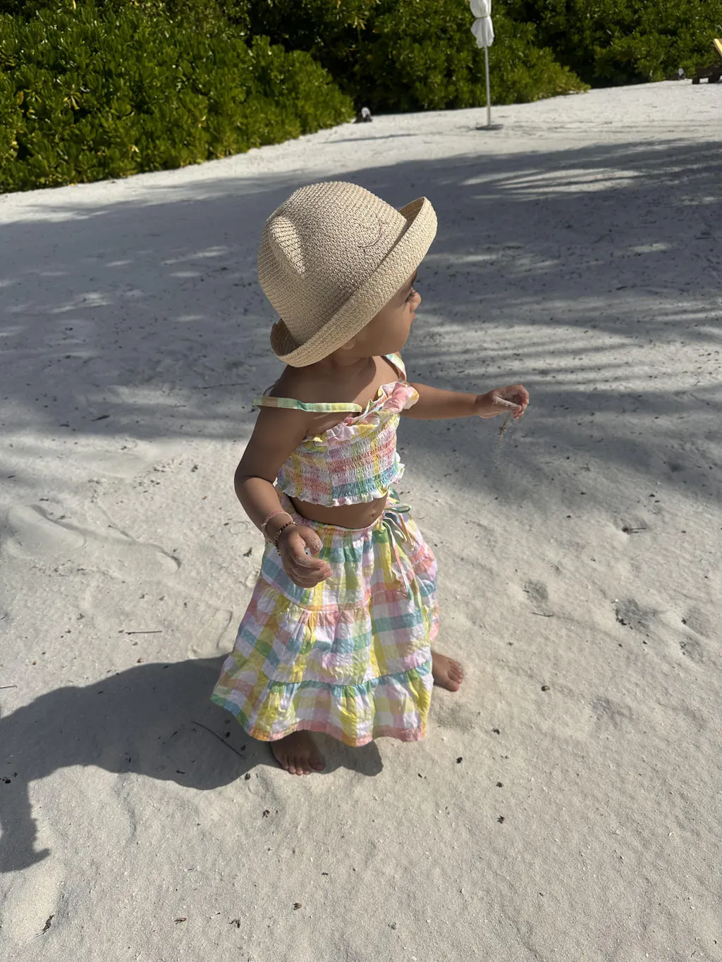 Sleeveless Smocked Checks Top & Skirt - Multicoloured