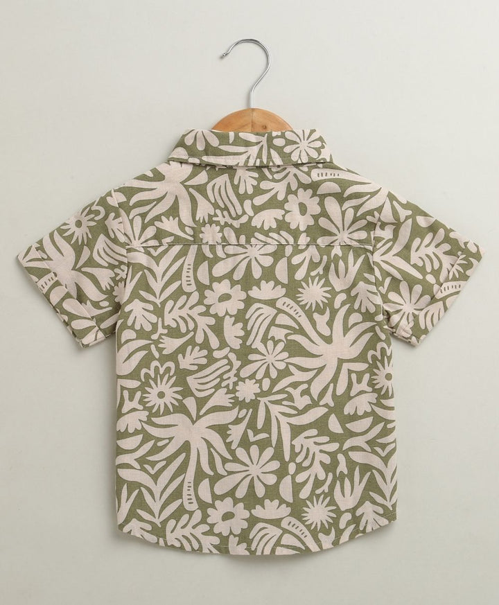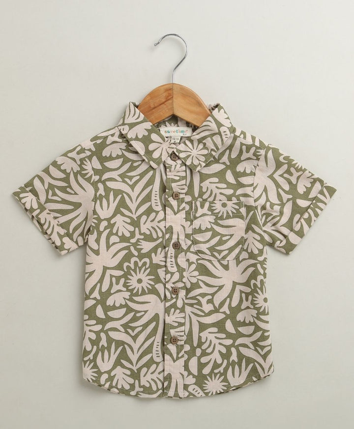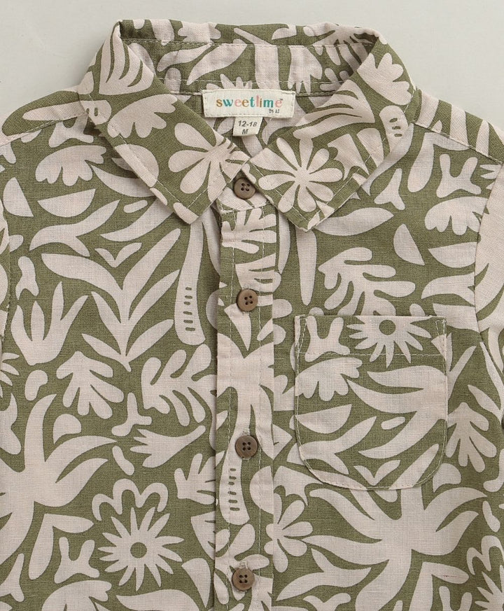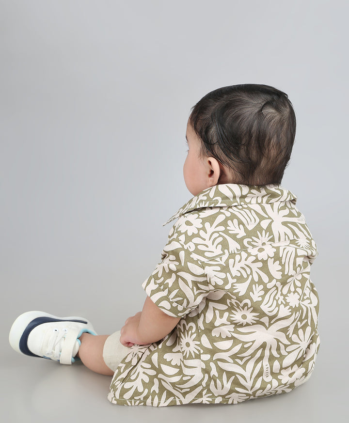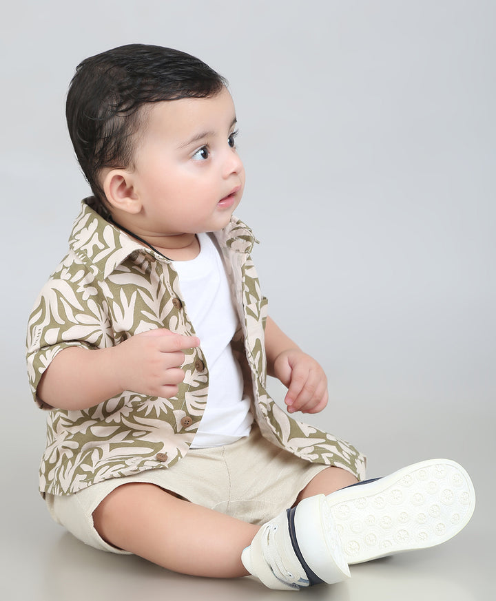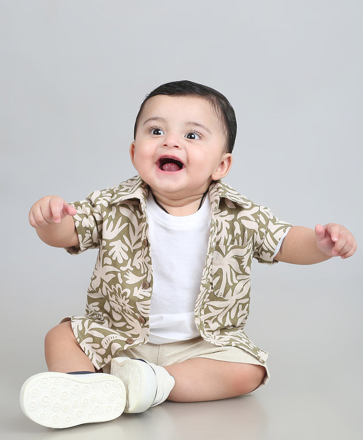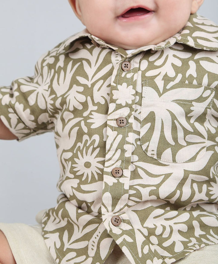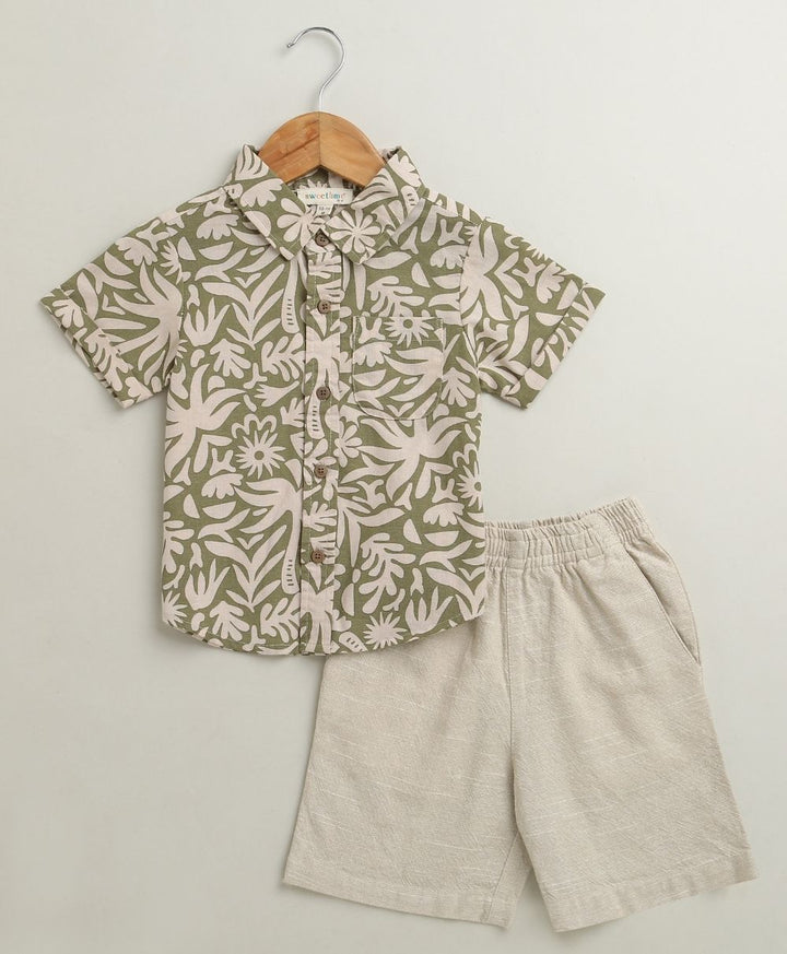 Sweetlime By AS Baby Boys Tropical Bloom Cotton Co-ord Set - Olive & Beige