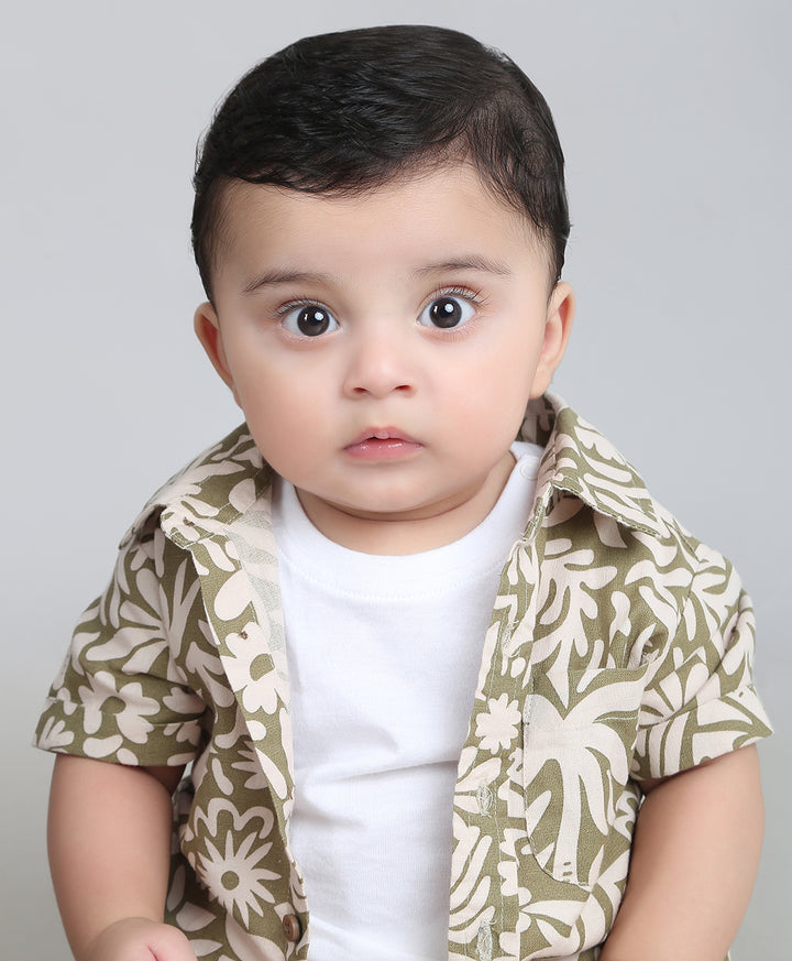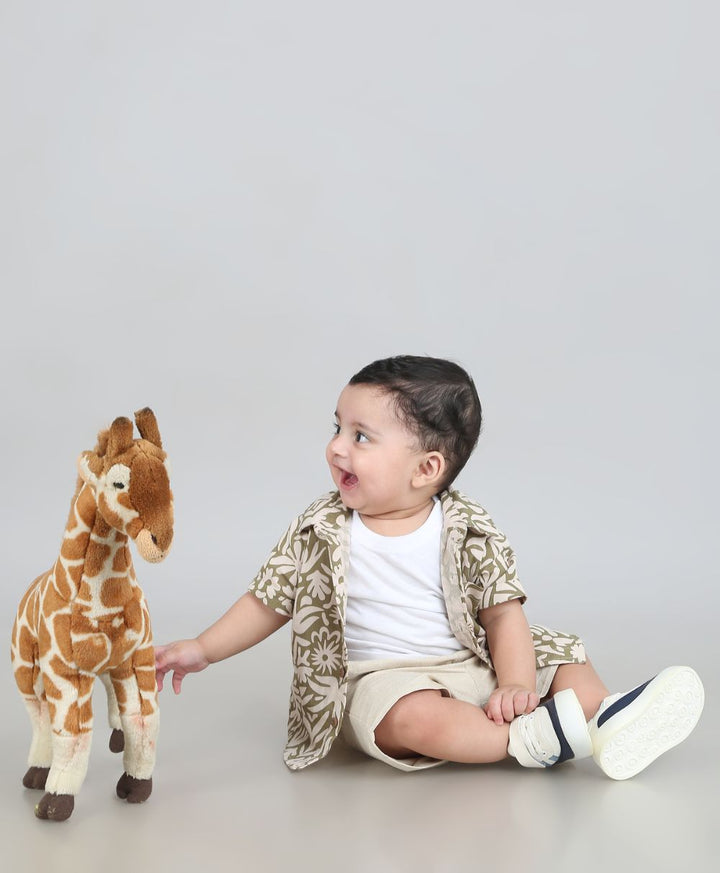 The Olive & Beige Tropical Bloom Co-ord Set by Sweetlime By AS, adds a cool, nature-inspired touch to your little one’s wardrobe with this 2-piece tropical outfit featuring a stylish olive green floral-print button-down shirt paired with comfy beige shorts. The earthy tones make it versatile for both casual playdates and summer outings, while the lightweight cotton fabric keeps your boy breezy and comfortable all day long.