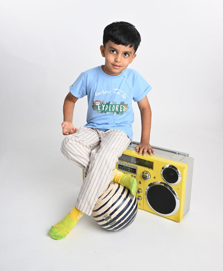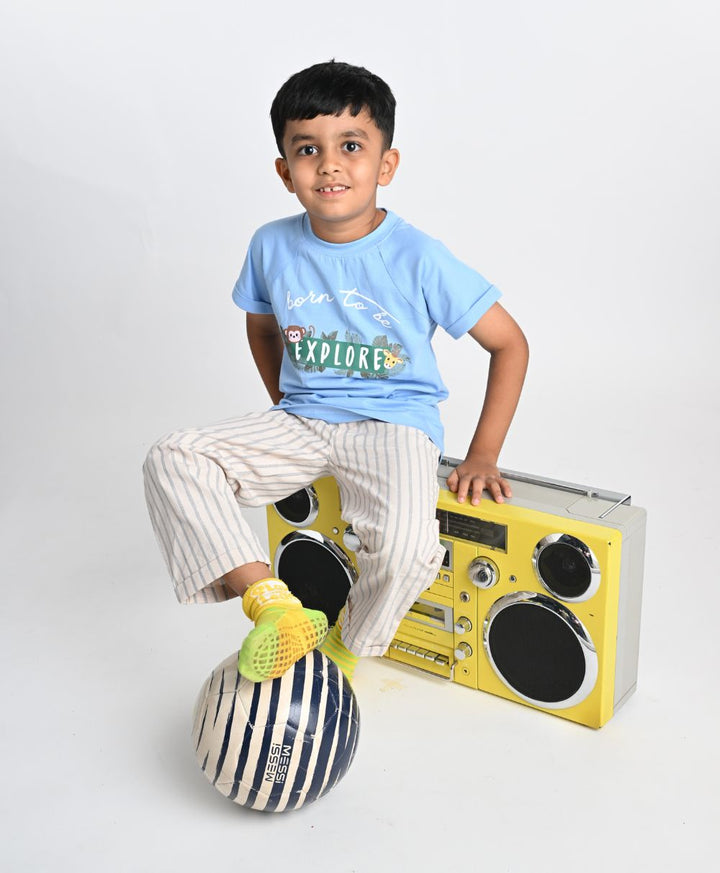 Let adventure lead the way with the Unisex Jungle Explorer T-shirt by Sweetlime By AS ! This sky-blue cotton t-shirt is made for curious little minds, featuring a playful jungle-themed print with a cheeky monkey, a smiling giraffe, and tropical leaves. The fun “Born to be an Explore” slogan adds a touch of wild spirit, making it perfect for playdates, park outings, or everyday exploring. Soft, breathable, and full of charm—just right for your little adventurer!